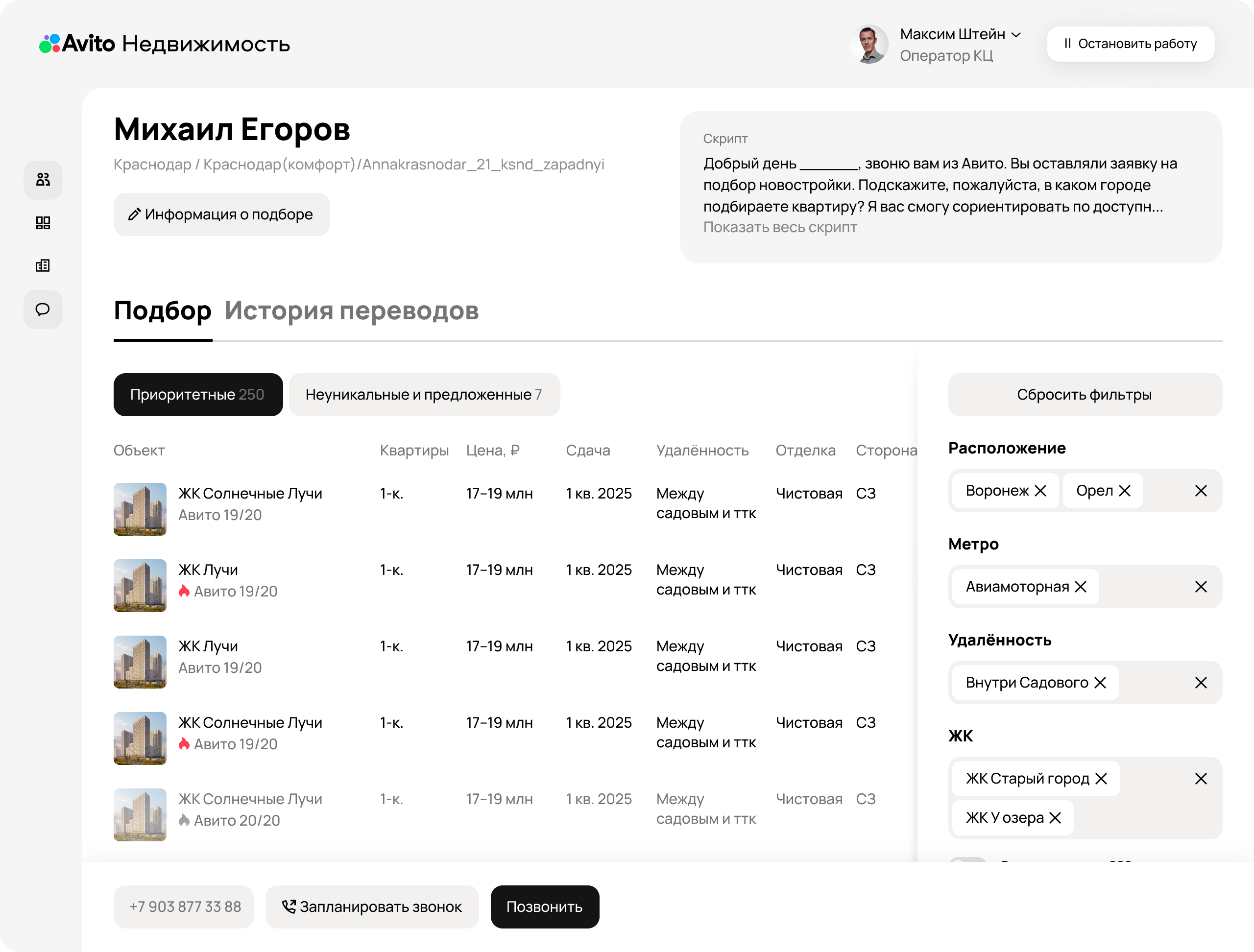 Спроектировал сервис для колл-центра Авито Недвижимость