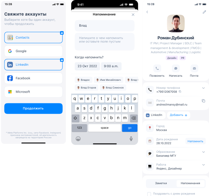 Парсинг контактов и механики для нетворка. Проект закрыт
