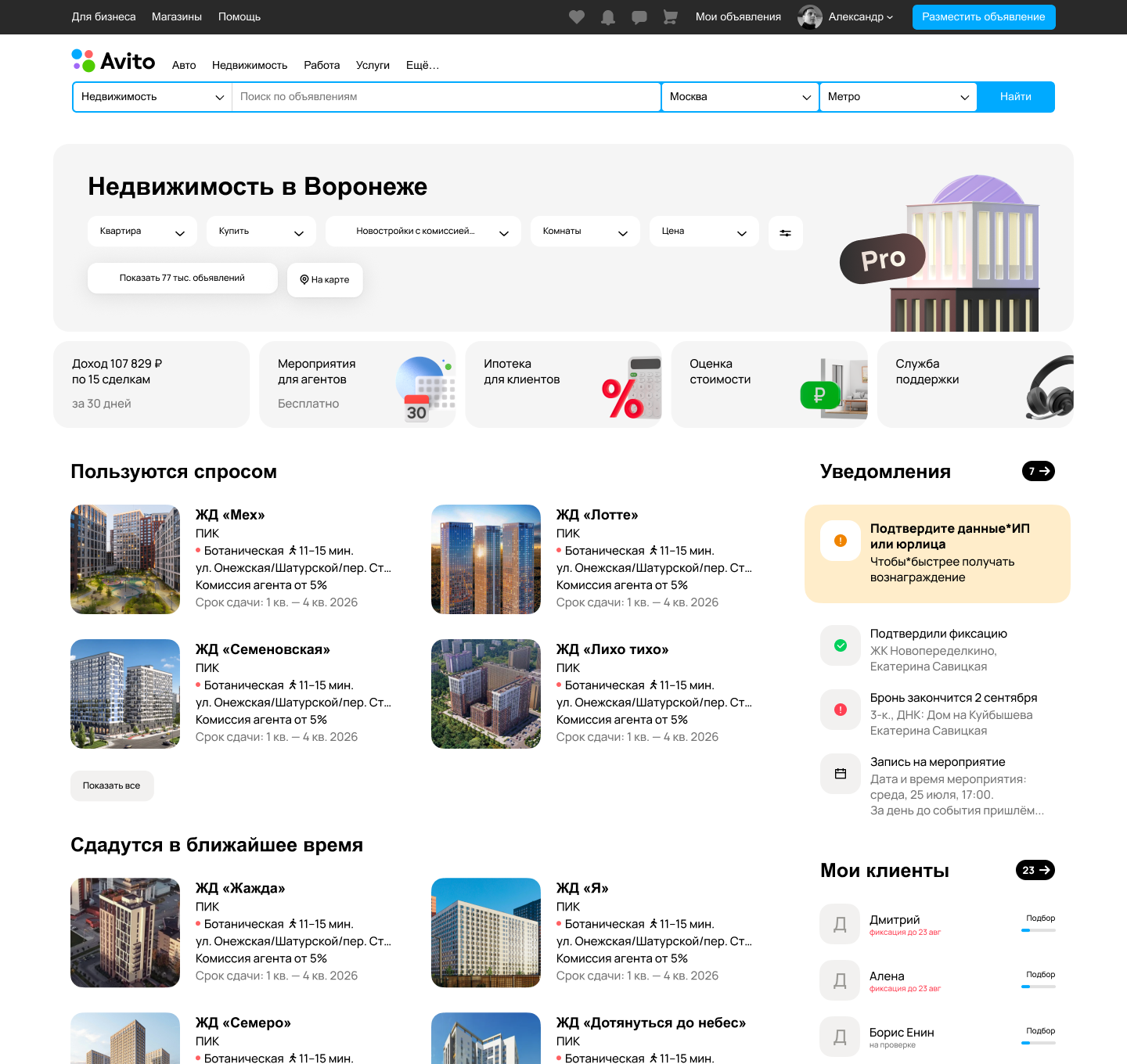 Спроектировал новую главную для риелторов в Авито Недвижимость PRO